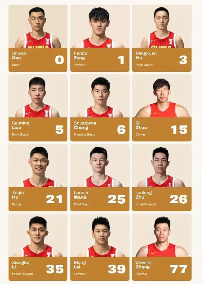 中国男篮首发:周琦、高诗岩、程帅澎、曾凡博、朱俊龙。